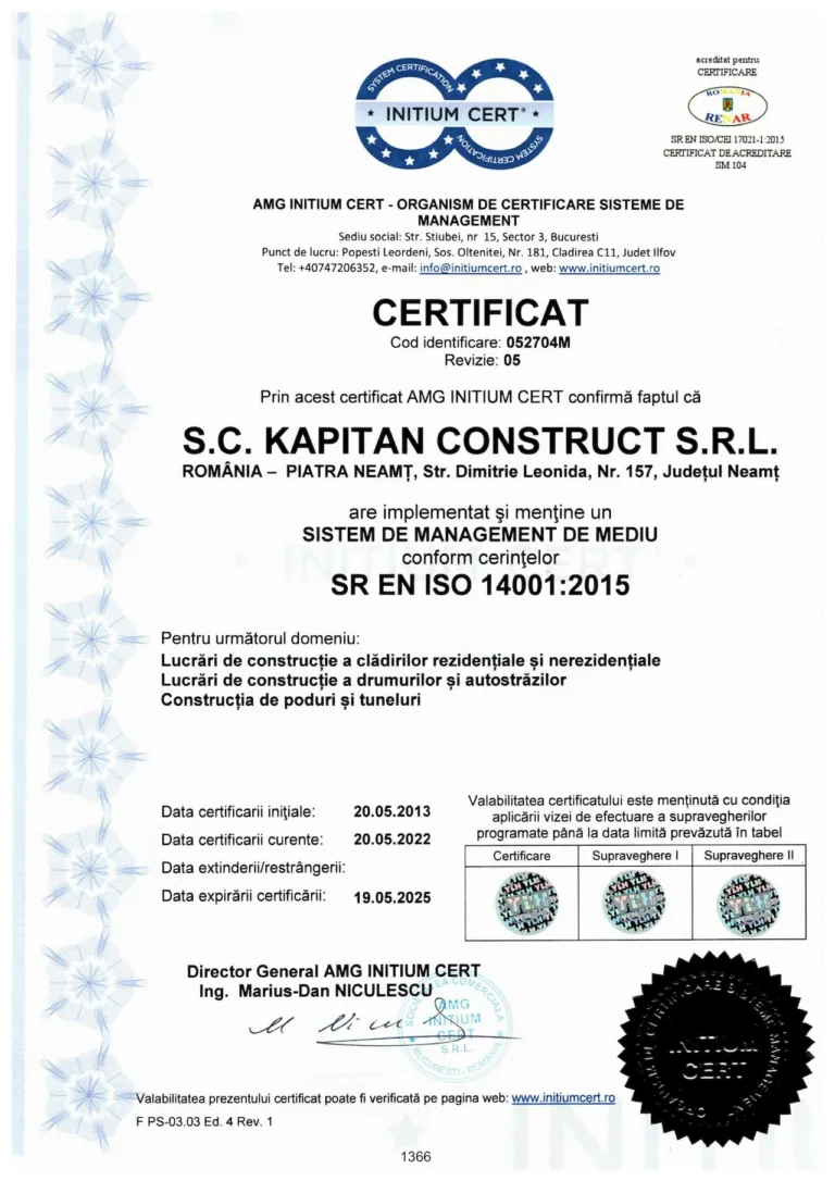 Din respect pentru natură am implementat și Sistemul de Management de Mediu ISO 14001:2005