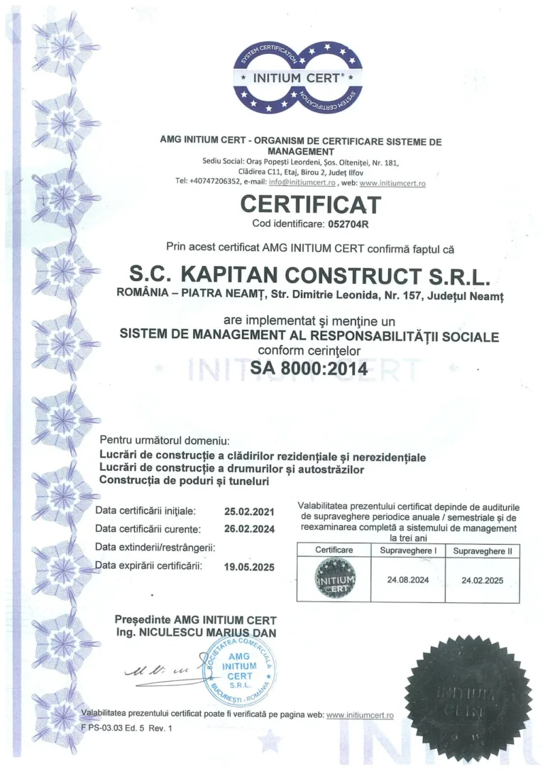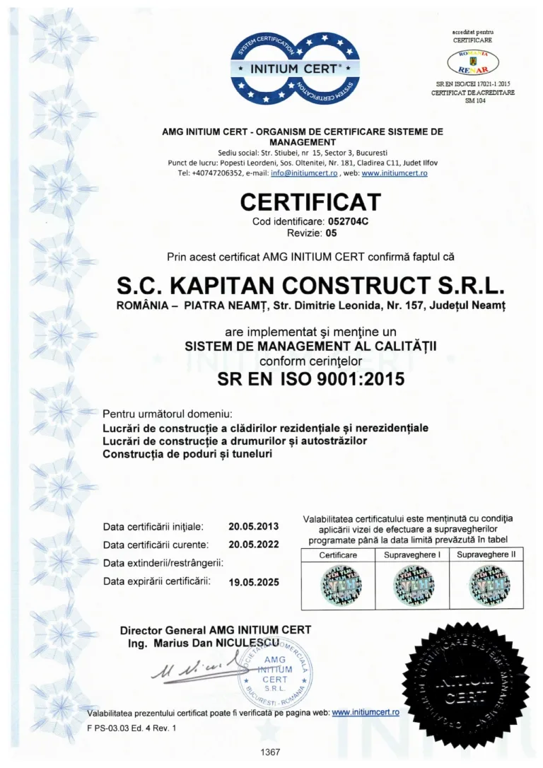 Sistemul de Management al Calității ISO 9001:2008 garantează clienților capabilitatea noastră de a implementa soluții inovative și în același timp de a respecta standardele și reglementările specifice.